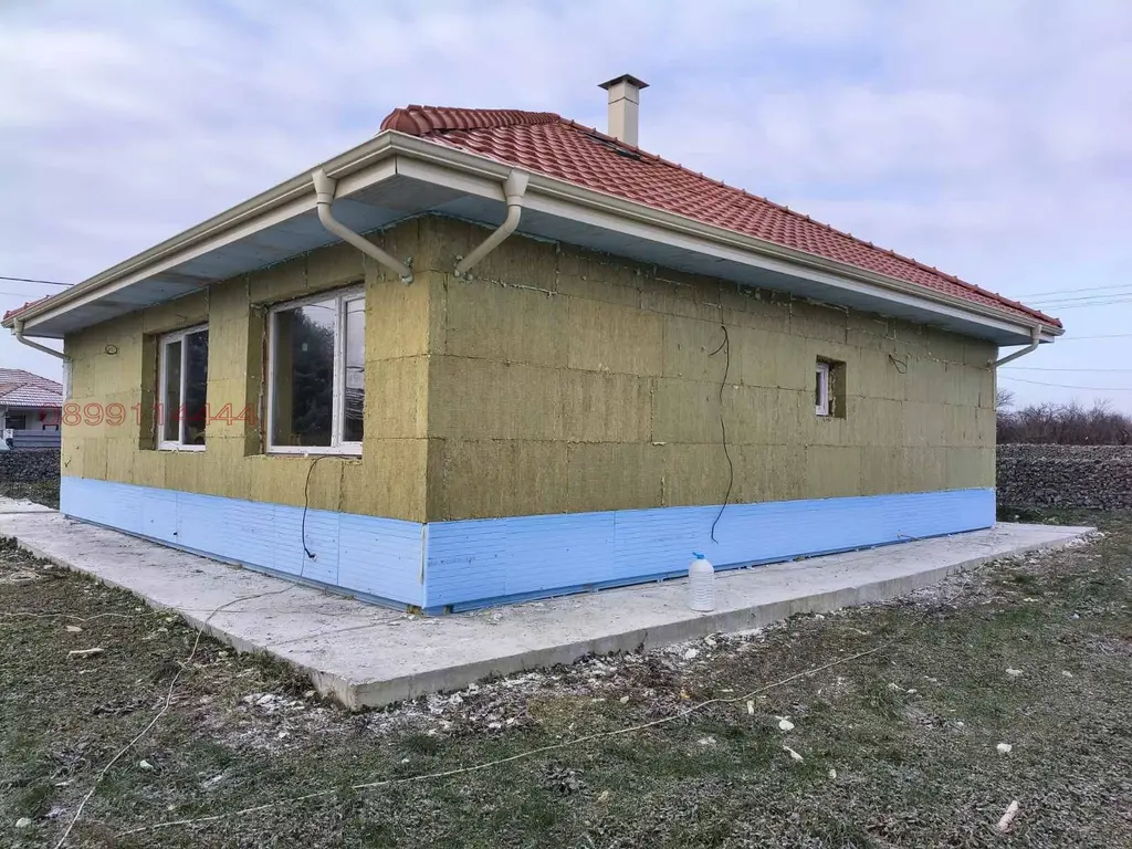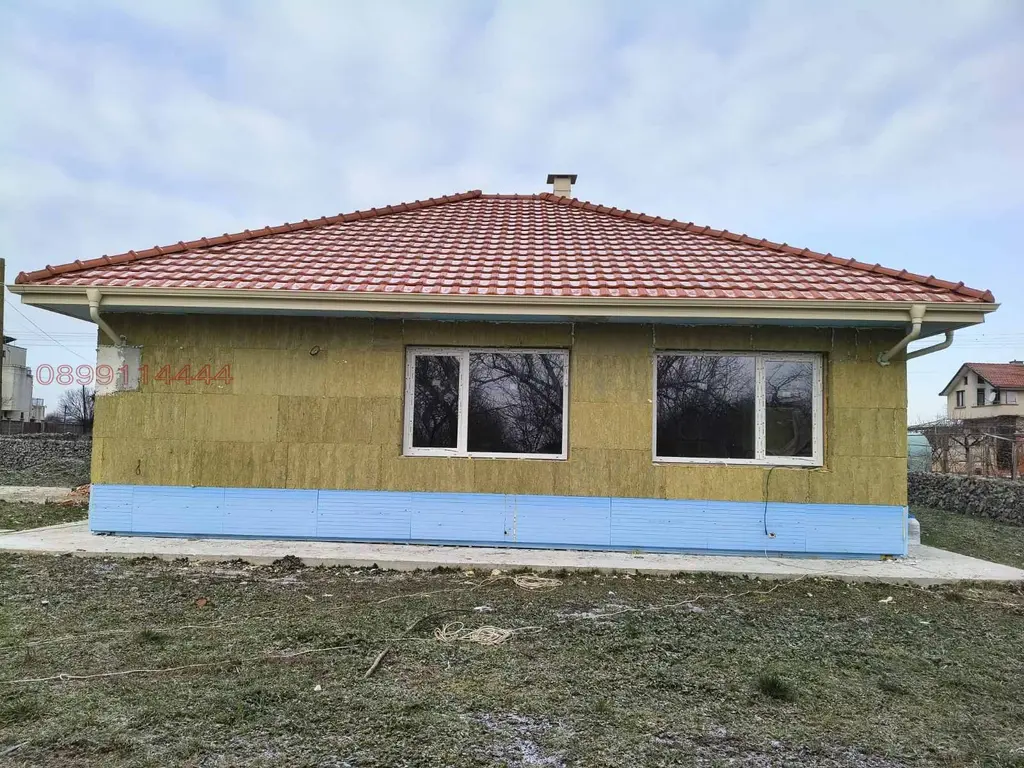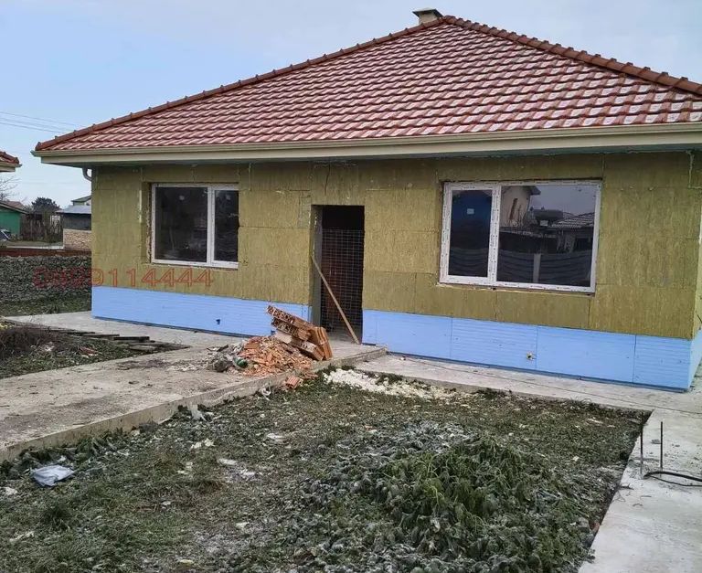 Къщата е на етап пред Акт 16, като за изпълнението им са използвани висок клас материали(Каменна вата 15см за външни стени,XPS 15см за цокъл,керемиди Тондах на Винербергер,висококачествен дървен материал за покрив,тухли Винербергер,подпокривното пространство е изолирано с каменна вата,немска дограма,подово отопление в цялата къща+изводи за конвектори,топлоизолация на плочите от XPS,монтирана камина за дърва).Къщата се издавана етап фина шпакловка и замазка.Акт 16 до 01.04.2026г.!!!!