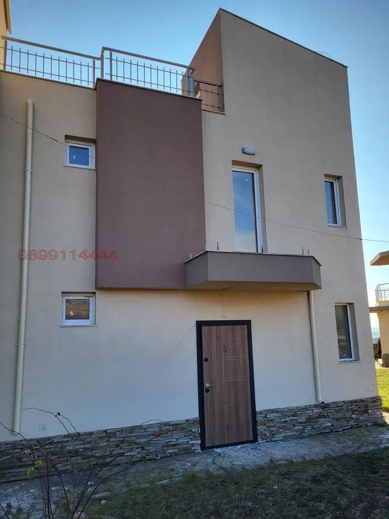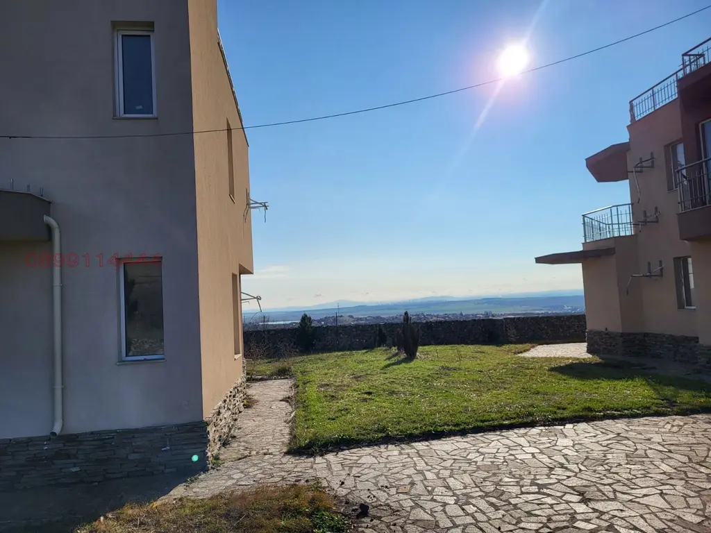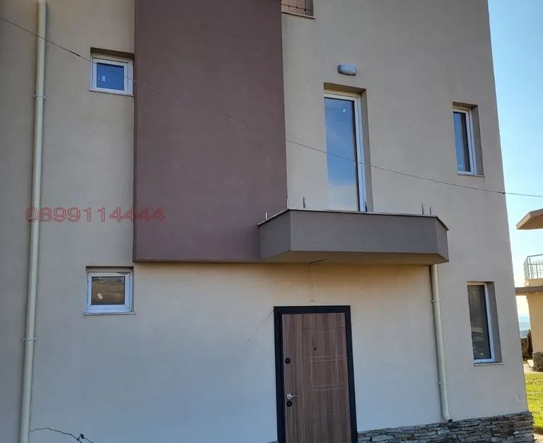 Къщата е със самостоятелен двор от 235кв.м и с площ от 174кв.м. Първото ниво се състои от: антре, склад, голяма дневна с трапезария и кухненски бокс, баня с тоалетна и прекрасна веранда. Второто ниво: две самостоятелни спални, с обща баня и тоалетна. На третото ниво е огромна тераса около 60 кв.м с прекрасна гледка към града. Пред всяка къща има обособени две паркоместа.