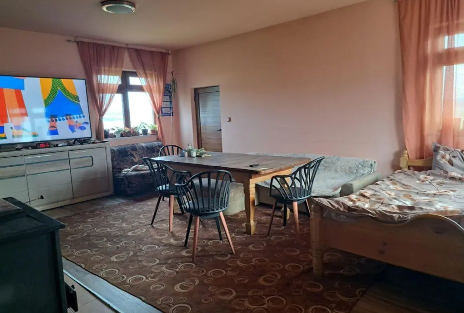 1-ви етаж - голяма всекидневна с хол и преходна кухня, тераса, баня+ тоалетна , спалня .