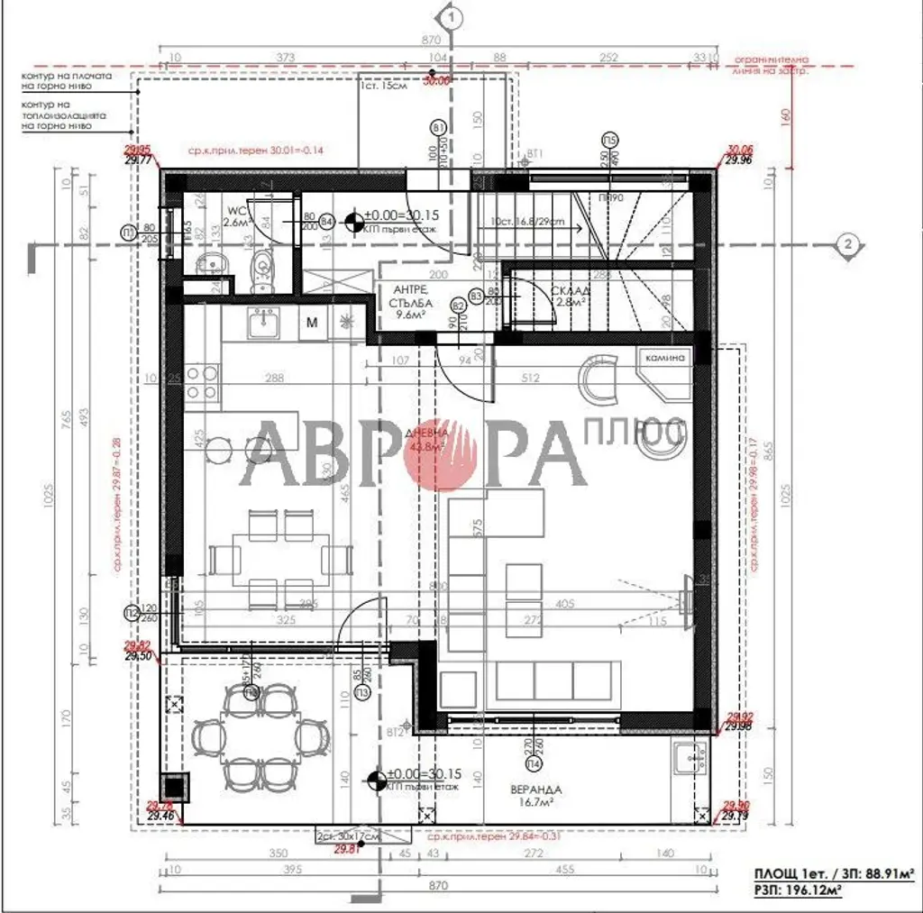 Агенция Аврора плюс предлага къща с площ 196 кв.м и самостоятелен двор 360 кв.м в живописната местност Лахана до кв. Сарафово.