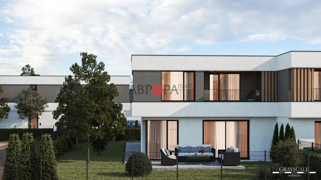 Агенция Аврора плюс предлага модерна новопостроена къща за продажба в кв. Ветрен, гр. Бургас, част от впечатляващия комплекс 'Blossom Gardens'.