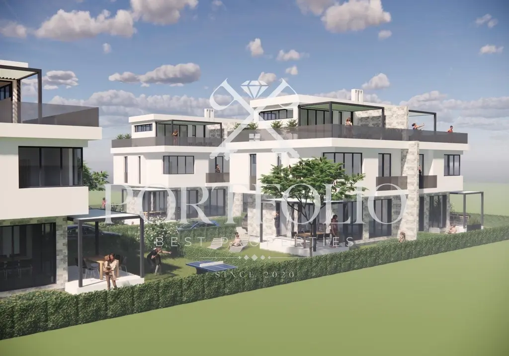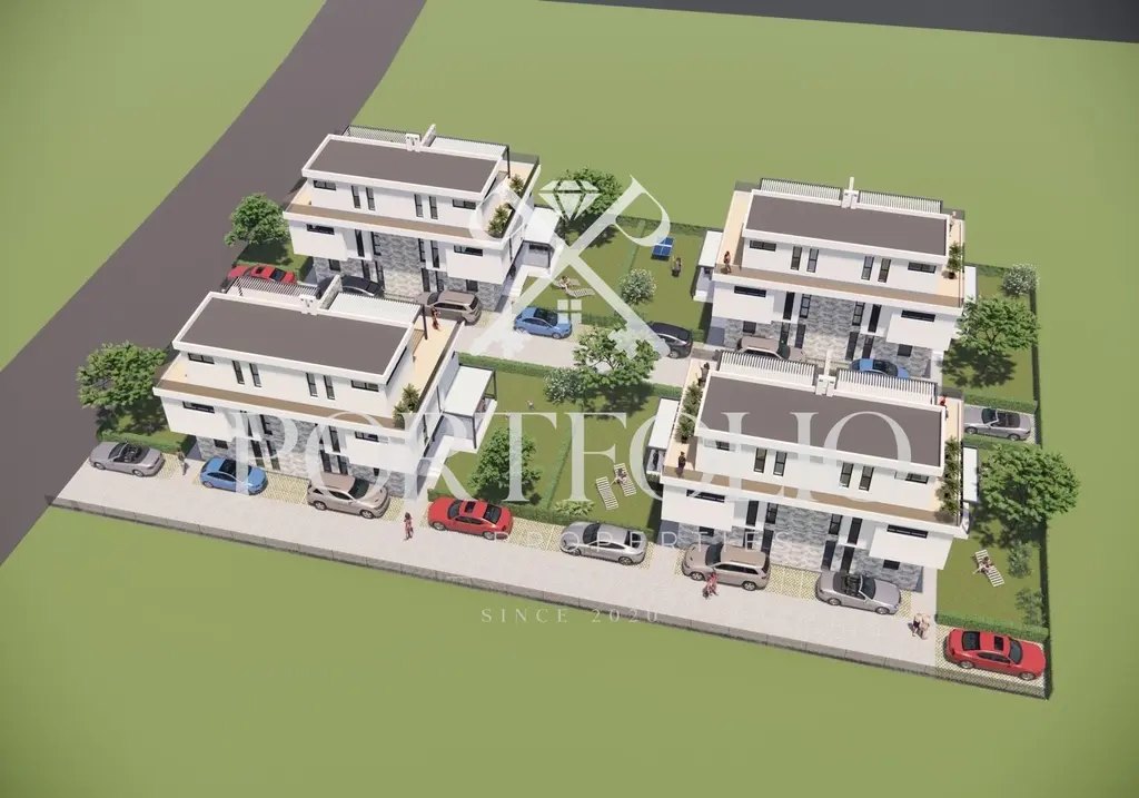 Дворно място от 140 кв.м., което ще бъде озеленено и затревено с райграс. Ограда. Две паркоместа.