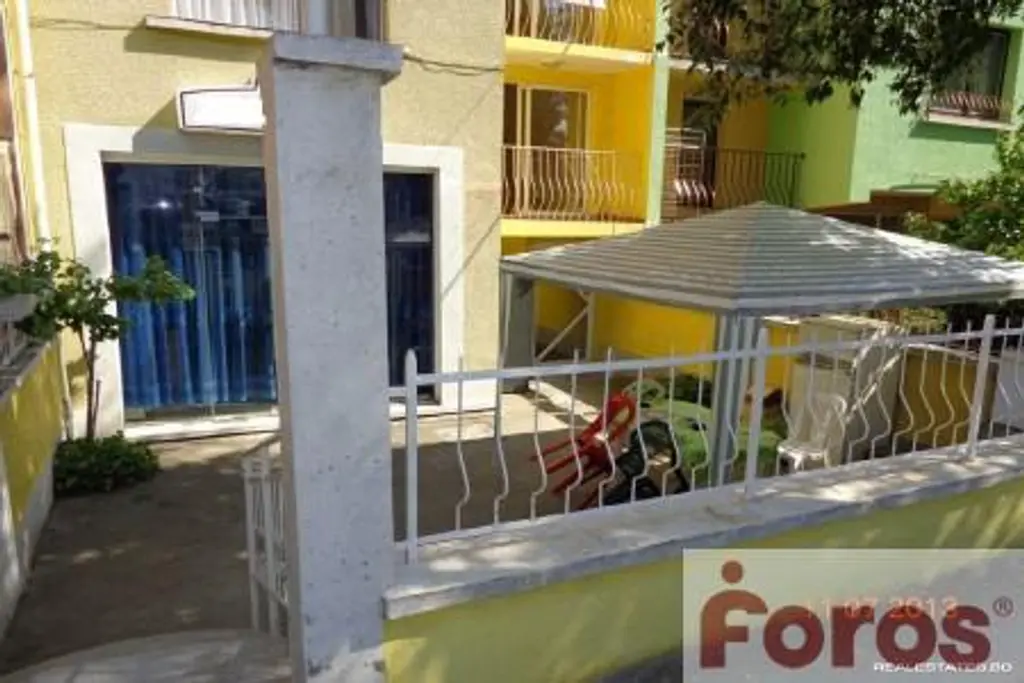 Четириетажна къща, тип 'Семеен хотел', в центъра на кв.Сарафово, близо до морето, училище, детска градина, автобусна спирка. Характеристики: Къщата е монолитно тухлено строителство, бетонни плочи, скатен покрив с керемиди. Къщата е измазана отвън, ПВЦ дограма, подови настилки от ламиниран паркет в стаите и теракот на стълбищните площадки, стълбище и оборудвани бани с бойлер. Състои се от просторна рецепция, подходяща и за заведение, 10 самост. стаи със сан. възли. Подови настилки от теракотни плочки, оборудвани бани с бойлери. Стаите са обзаведени с по две легла, хладилник, телевизор. Партер и полусутерен - рецепция, кухня, склад; Полуетаж - Студио с 2 стаи, тераса и сан. възел. и ет. - по 3 стаи със самост. бани, две тераси. ет. - 2 стаи със самост. бани и големи веранди. Двор 400кв.м., ограден с метална ограда, цветни алеи и барбекю.Предимства: Четириетажна къща тип 'Семеен хотел', в центъра на кв.Сарафово.Брокер за контакти:Ирен Рангелова, тел.0893383413