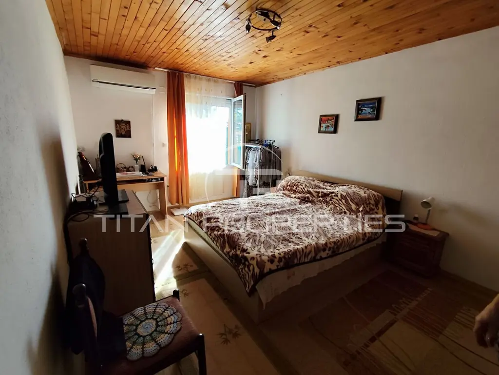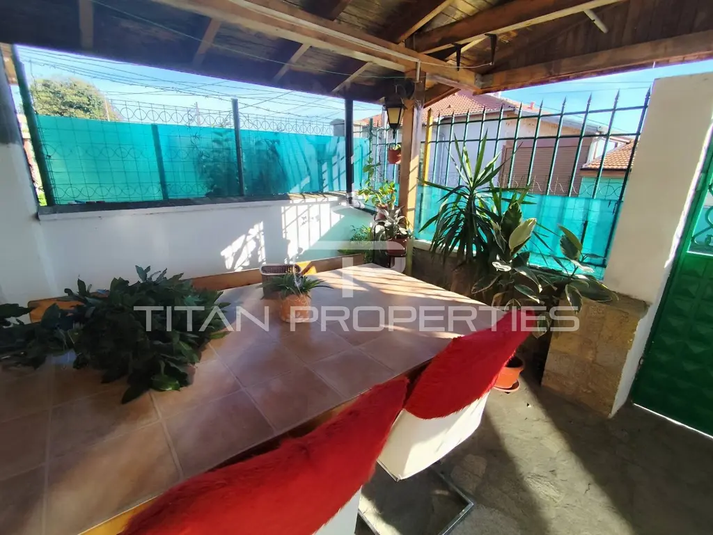 Агенция за недвижими имоти 'Титан Пропъртис' предлага на Вашето внимание за продажба, Къща с два отделени входа и отделни партиди за ток и вода в гр. Каблешково. Намира се на тихо и спокойно място, в непосредствена близост до хранителен магазин, спирка на градски транспорт, както и на по-малко от 15 минути с кола от к.к Слънчев Бряг. Районът е с отлично развита инфраструктура - училище, детска градина, църква, детски площадки, кафенета, заведения, редовен транспорт, аптека. Имотът е с РЗП: 255 кв.м. и двор 1200кв.м Къща 1 е с площ от 59 кв.м Разпределение: -коридор -входно антре, -три спални, -баня с WC Къща 2 е с площ от 84.10 кв.м Разпределение: -коридор -просторна всекидневна с кухненска част, -голяма спалня, -WC, баня, -мокро помещение, складово помещение и закрита външна веранда. В двора е обособена външна кухня с площ от 16,40 кв.м, както и 50 кв.м метална постройка за съхранение на оборудване, 18 кв.м. хамбар и напълно оборудвана работилница 7,5 кв.м., както и метален навес с вход за две коли. В допълнение към двора са засети и плодородни овощни дръвчета, озеленена предна част и асма. Агенцията съдейства за банково кредитиране с всички водещи банки в страната при най-добри условия! За оглед на това и други атрактивни предложения, не се колебайте да ни потърсите на посочения телефон или да ни изпратите данните си чрез формата за запитване на сайта. Реф. номер: 2081632
