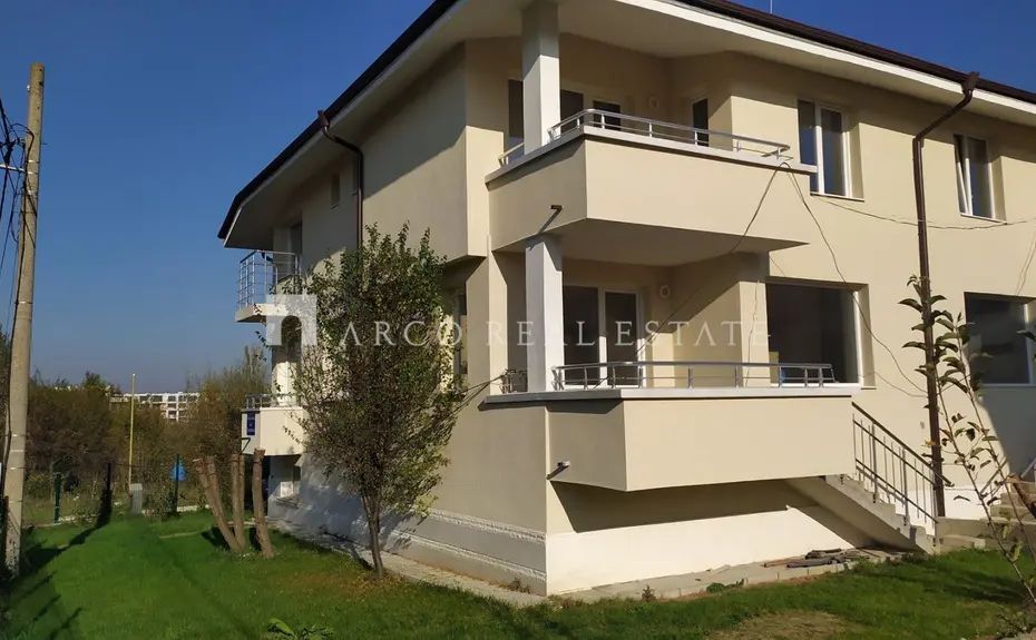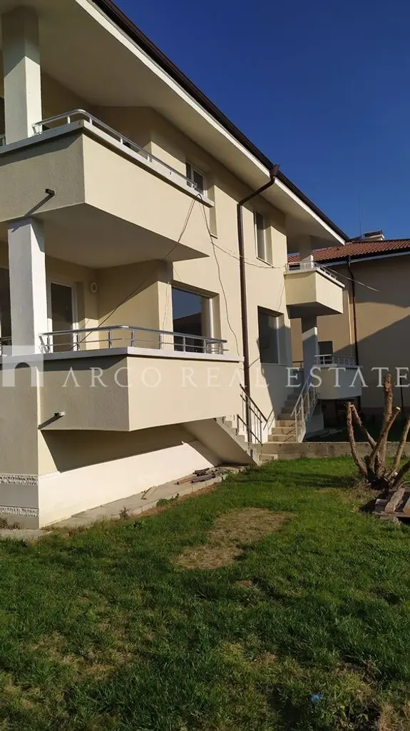 АRCO REAL ESTATE продава еднофамилна къща в жилищен комплекс от затворен тип, разположен в близост до Южен парк, молове и големи вериги магазини. Комплекс, изолиран от шума, напрежението и динамичния живот в големия град, сгушен между зеленина, тишина и спокойствие, с бърз и удобен излаз до главни пътни артерии на столицата.