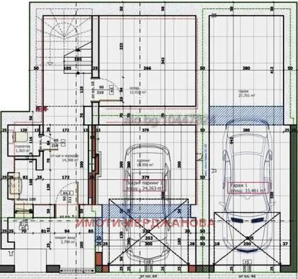 Партер: 2 гаража, склад и санитарен възел.