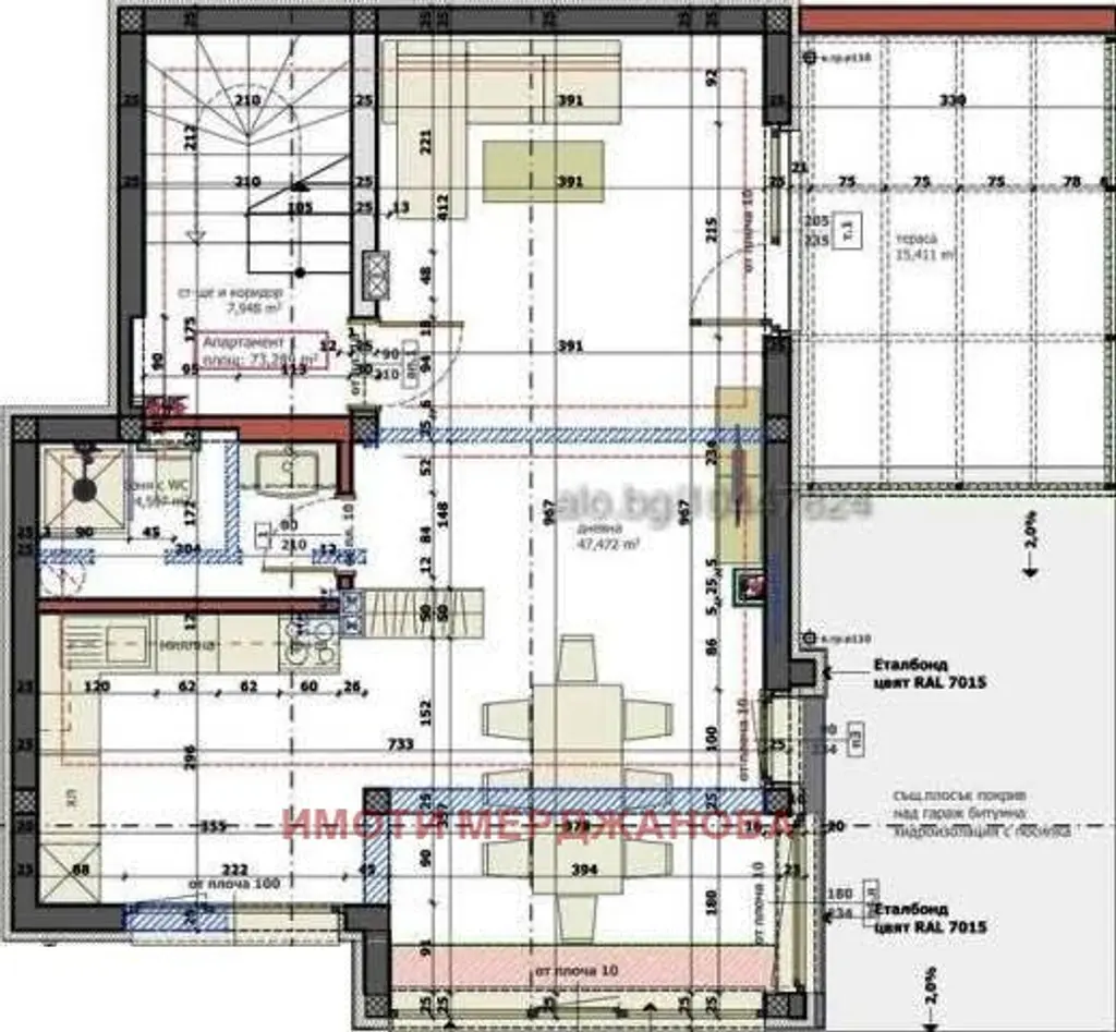 Общата квадратура е 324,51 кв.м. Състои се от: