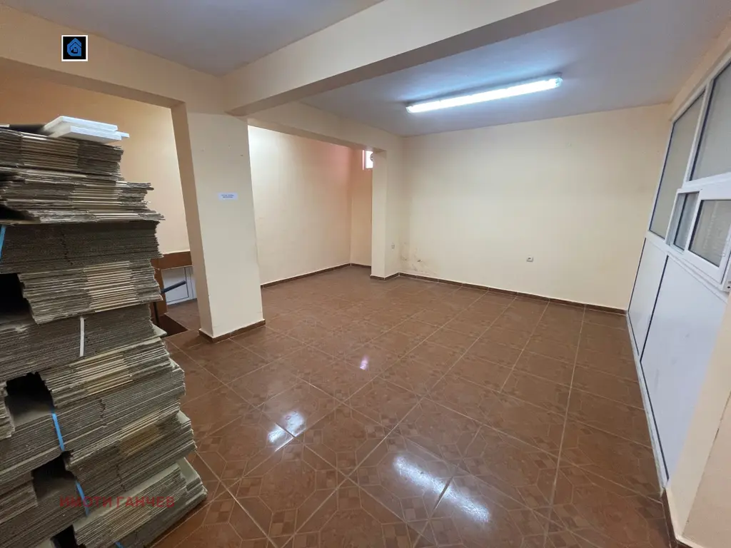 Първият и вторият етаж на къщата са обособени като офис с складово товарна част а третият етаж е предвиден за жилищни нужди . Имота разполага с малък вътрешен двор а в близост паркирането не е проблем . Продава се целият имот и коментари на цената се приемат само след оглед и сериозен интерес .
