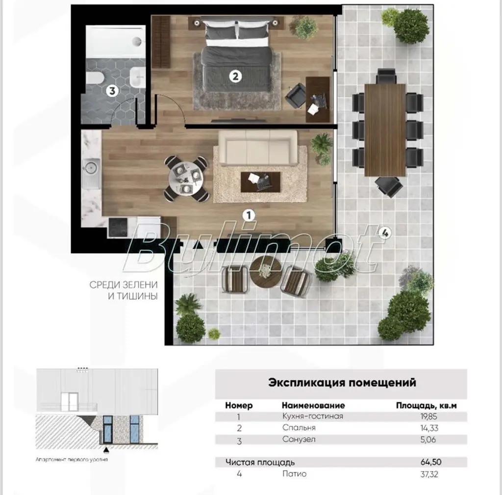 Разположена в близост до природен парк, заобиколена от зеленина 🌿, СПА център, целогодишно отопляеми басейни 🏊, ресторант 🍽️, оборудвани детски и спортни площадки ⚽🏀, както и места за отдих сред обмислен ландшафтен дизайн. 🌺🌼