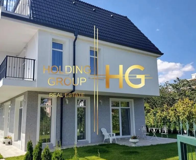 HOLDING GROUP real estate има удоволствието да Ви представи триетажна къща с морска панорама, намираща се в близост до морския бряг. Имотът е с чудесно аранжиран двор с поливна система, кът за релакс и две HOLDING GROUP real estate паркоместа с автоматизирани врати. Разпределението е следното: просторен дневен тракт с височина на тавана 3м., френска камина с въздуховоди, просторна дневна с кухненска част, тоалет, гардеробна и техническо помещение. По вътрешни стълби се стига до втори етаж, където са разположение - две спални, едната от които със собствена гардеробна, два комбинирани санитарни възела, вън;на панорамна тераса и перално - гардеробно помещение. Третият етаж се състои от две спални, баня с тоалет, гардеробно помещение, както и тераса с уникална морска гледка. Предимставата на къщата са: включена е към централата канализация, енергийна ефективност, автоматизирана поливна система, прекрасна морска гледка, бърз и лесен достъп, модерен дизайн, висококачествени материали. Разположожена е на минути от морския бряг. Района е целогодишно населен и разполага с магазини за хранителни стоки, заведения, Свободен Университет, аптека, спирки на редовния градски транспорт и много други удобства. Заповядайте на оглед!