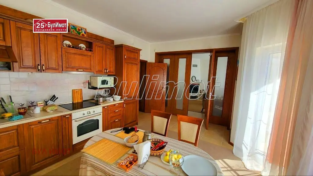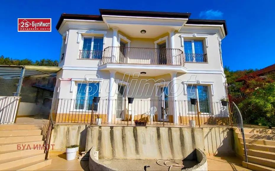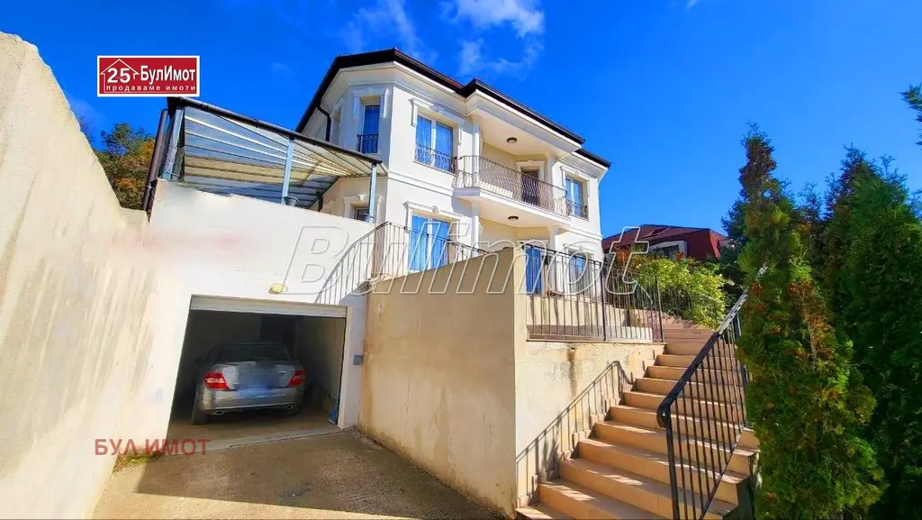 БУЛ ИМОТ предлага на Вашето внимание уютна двуетажна къща с РЗП 200 м² в живописната м-т Манастирски рид, гр. Варна. Построена и въведена в ескплоатация през 2016 г., с просторен двор 865 м², гараж 26 м² и паркинг 150 м². Къщата разполага с 3 спални, 3 бани, напълно оборудвана кухня, камина с локално отопление, климатици Daikin. Имотът е с трифазен ток, вода с резервоар, септична яма + централна канализация. Панорамна гледка към морето и града. Спокойно и озеленено място, подходящо за целогодишно живеене.