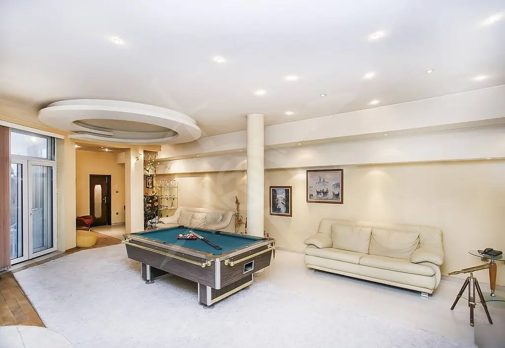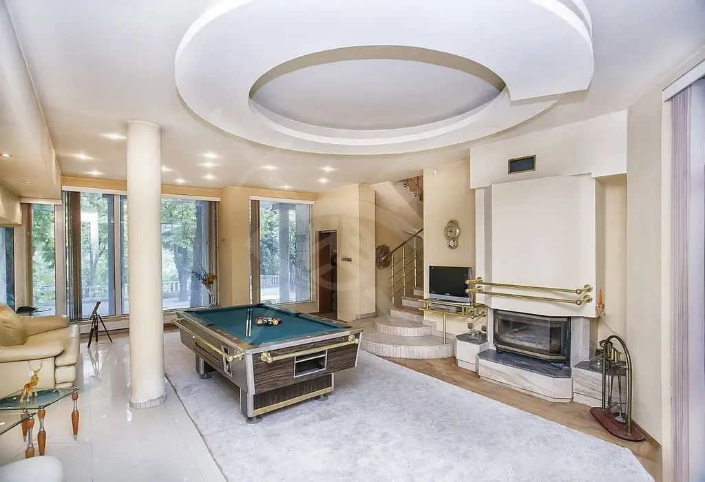 Партерен етаж: разполага с над 2-метрови витрини и красиво стълбище. Има собствен вход и е подходящ за отдаване под наем (например за козметично студио, спа салон и др.) или може да се инсталира голям вътрешен басейн за лично ползване според оригиналните виждания за сградата.