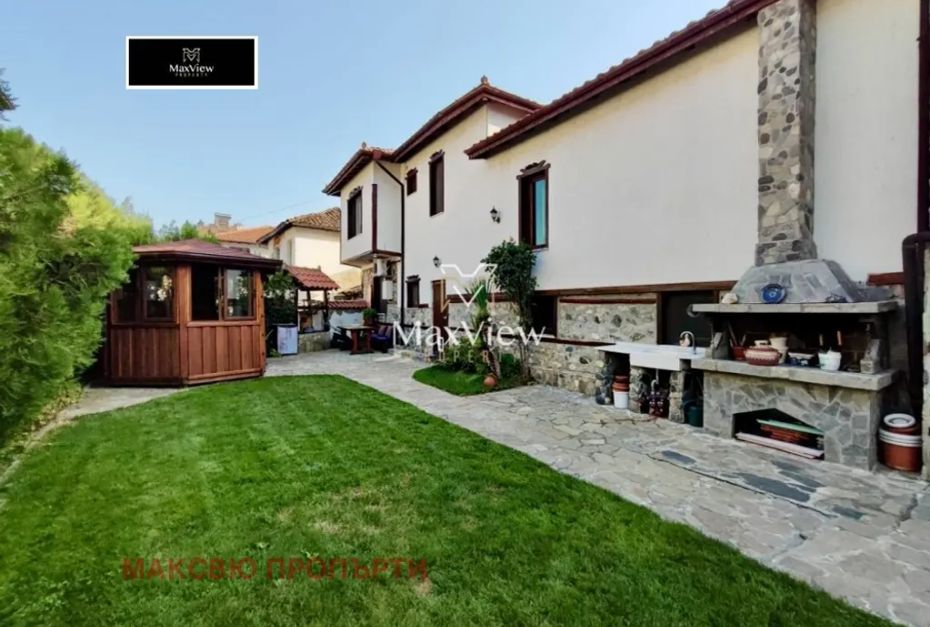 Предлагаме ви уникална къща, намираща се в сърцето на родопския град Златоград – любима туристическа дестинация на хиляди, както през летния, така и през зимния сезон. Имотът е подходяща както за лично ползване, така и за използване като хотел, за което е налична цялата необходима документация. Стабилната монолитна постройка на къщата съчетава старинен екстериор с модерен луксозен интериор. Санирана и напълно реновирана с най-качествени материали за максимален комфорт. Състои се от два етажа, с разгъната площ от 205м2, върху парцел от 370м2. Разполага с 4 спални, баня със санитарен възел към всяка една от тях. Влизайки през входа, се озовавате в антре, в което има две врати – едната с достъп до просторна всекидневна с камина, бар и кухня, а другата – с достъп до сърцето на вилата, където се намира централно отворено стълбище. Оттук можете да изберете достъп до двора, до кухня с всекидневна, до сервизен партерен етаж или да се качите нагоре към спалните. Сервизният етаж включва коридор, обособен като втора кухня с аспиратор и фризер, отделен склад, перално помещение и отделна баня с тоалетна. Нагоре по стълбището, се озовавате на отделен полуетаж, на който има коридорче със самостоятелна спалня и баня с тоалетна. На втори етаж на вилата, има кът за отдих, от който се осъществява достъп до три отделни спални, всяка със собствена баня и тоалетна, като едната в момента е обособена като офис/ателие. Подът на всяка от спалните е с дюшеме от солидно дърво. Таваните също са от дърво с масивни дървени греди. Намира в стария град, с гледки към запазени старинни къщи, а пред нея се намира Въргова чешма с прясна планинска вода. Интериорът е изключително разчупен и удобен. Професионално озеленена градина с две беседки от масивно дърво – едната отворена, а другата остъклена, с дървен под и соларна печка за ползване през зимата. В средата на градината има барбекю с отделен комин и мраморна външна мивка. Зелените площи са снабдени с автоматична поливна система с нова хидрофорна помпа, свързана към дълбок естествен кладенец. В градината има и изградено вирче с малък мост, който минава над него. От градината се влиза в отделно пожароустойчиво котелно помещение, в което е разположен нов и икономичен пелетен котел с Wi-Fi термостат, както и стаичка за пелети, която побира нужното гориво за целия зимен сезон. За повече информация: 0888 530 711; 0893 069 401