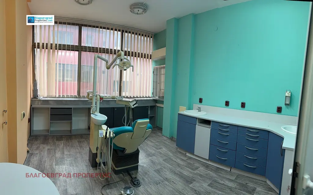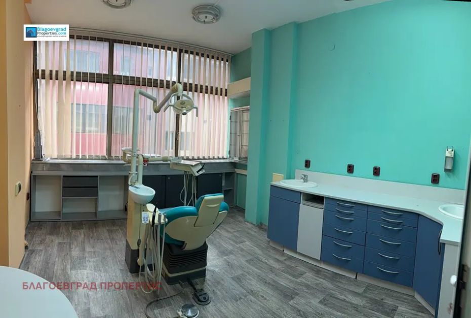 Предлагаме за отдаване под наем обзаведен и оборудван зъболекарски кабинет в идеалния център на града, в сграда с други стоматологични кабинети, както и офиси. Състои се от едно пространство в което е разположено всичко необходими, има възможност да бъде направен и като офис. Статутът му в момента е на зъболекарски кабинет, но може да бъде променен. За отоплението и охлаждането има поставен климатик.