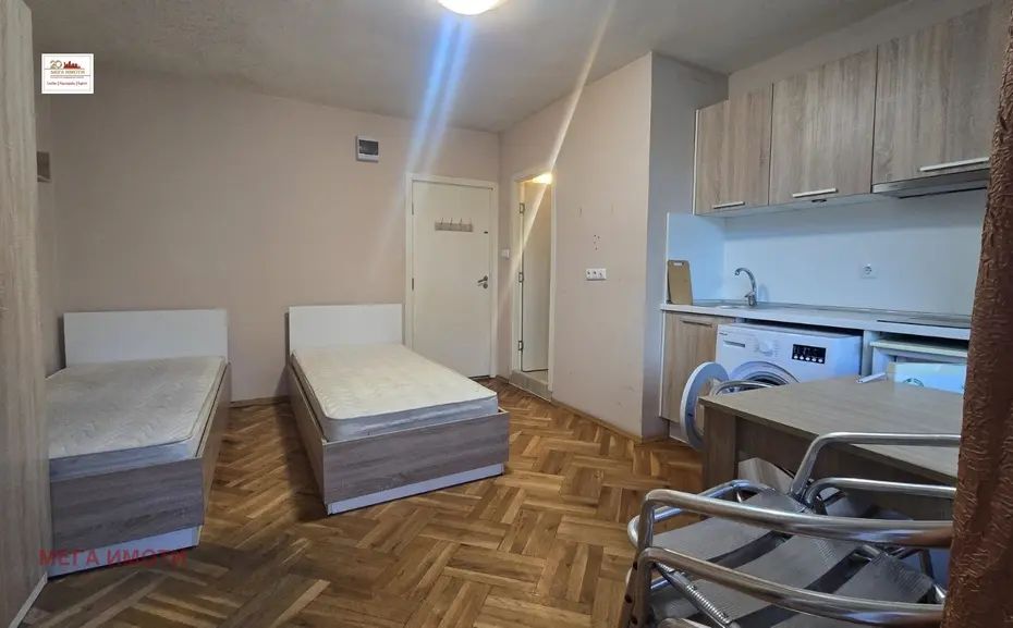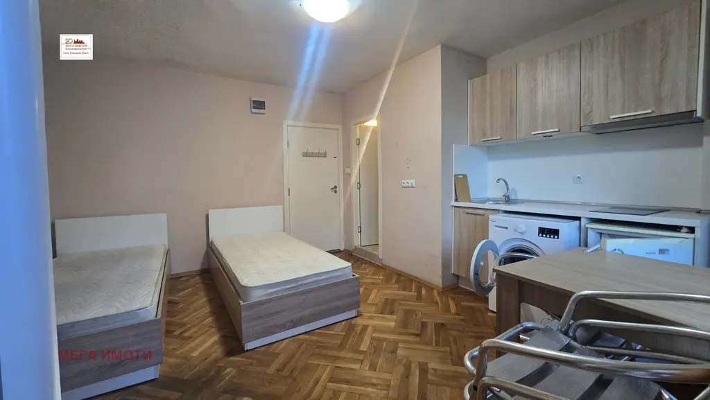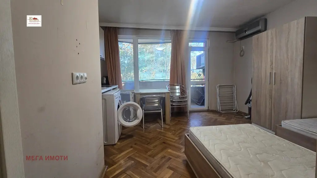 ИНВЕСТИЦИОНЕН ИМОТ!!! ЧЕТИРИ студиа на цената на ДВЕ!!! В района на Билкова аптека и Музикалното училище в сграда от 2000 г. с асансьор и Акт 16 просторен тристаен апартамент на четвърти жилищен етаж с изложение север/юг, преустроен на ТРИ студиа, всяко със санитарен възел и тераса. Към имота има и прилежащ мансарден таван, преустроен в стая с WC. Имота се продава с наличното обзавеждане и оборудване. Реф. номер 19403