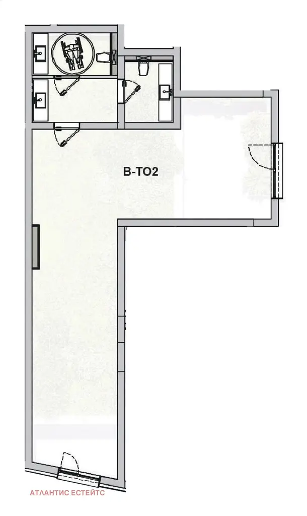 Описание на офиса: Състои се от светла зала с големи прозорци, осигуряващи естествена светлина през целия ден и тоалетна. Височина на таваните - 3,20м.
