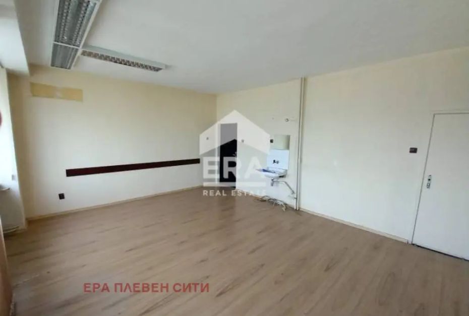 ЕКСКЛУЗИВНО! ЕРА ПЛЕВЕН СИТИ дава под наем офис в административна сграда, с квадратура от 34 кв.м., без обзавеждане . Санитарен възел на етажа, отопление ток.