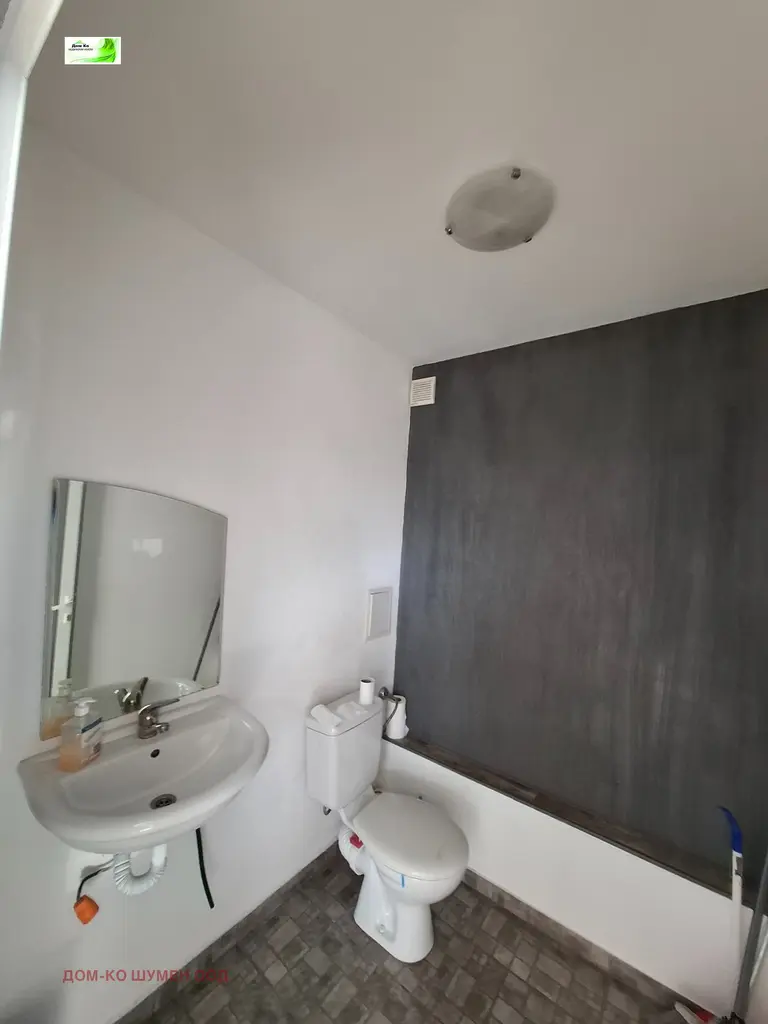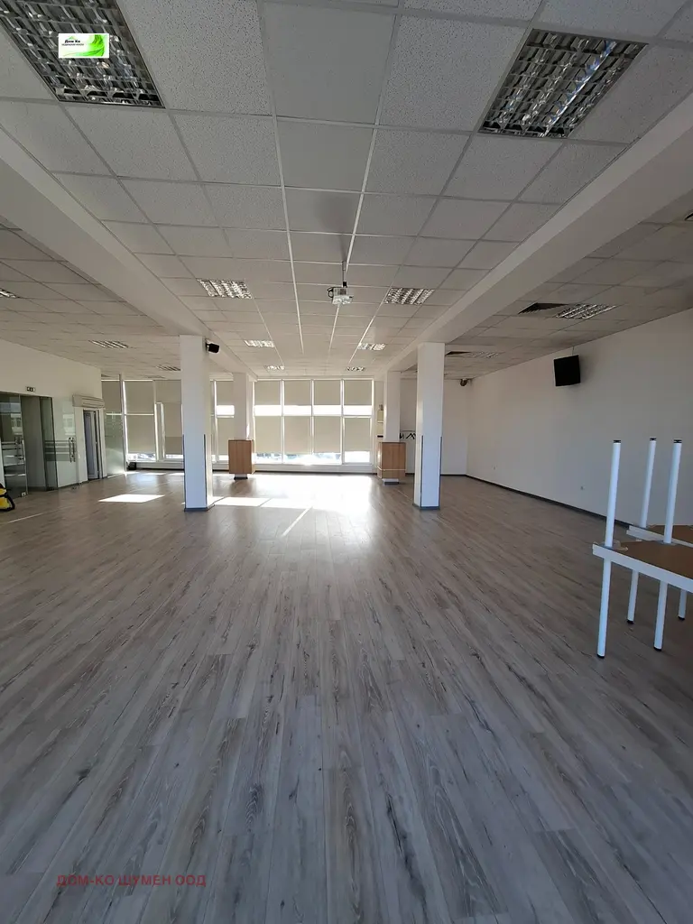 Агенция 'Дом-Ко Шумен' отдава под наем просторно и функционално офис помещение по бул. 'Ришки проход' с площ от 180м2. Едно голямо светло и просторно помещение с възможност за преграждане. Големите прозорци осигуряват изобилие от естествена светлина и създават усещане за простор и комфорт. Санитерен възел и кухненски оборудван бокс. Два климатика.