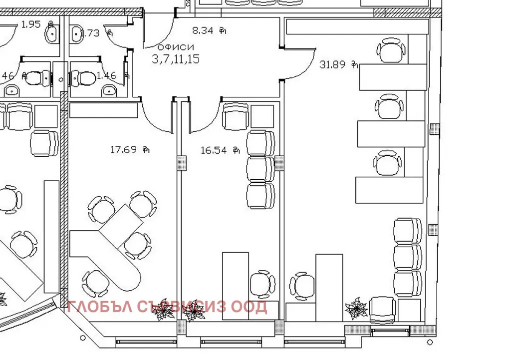 Нова офис сграда с разрешение за ползване от 2006 г., 24 часова охрана с видеонаблюдение, комуникативно място в близост до Мол София и метростанция. Площта на офиса е 105,52 кв.м., разпределени на 3 помещения и санитарен възел. Луксозни довършителни работи, офис осв. тела, климатизация, структурно окабеляване. Такса поддръжка - 2 евро/кв.м. Възможност за наемане на паркоместа - 150Е/месец. Върху цените се начислява ДДС.