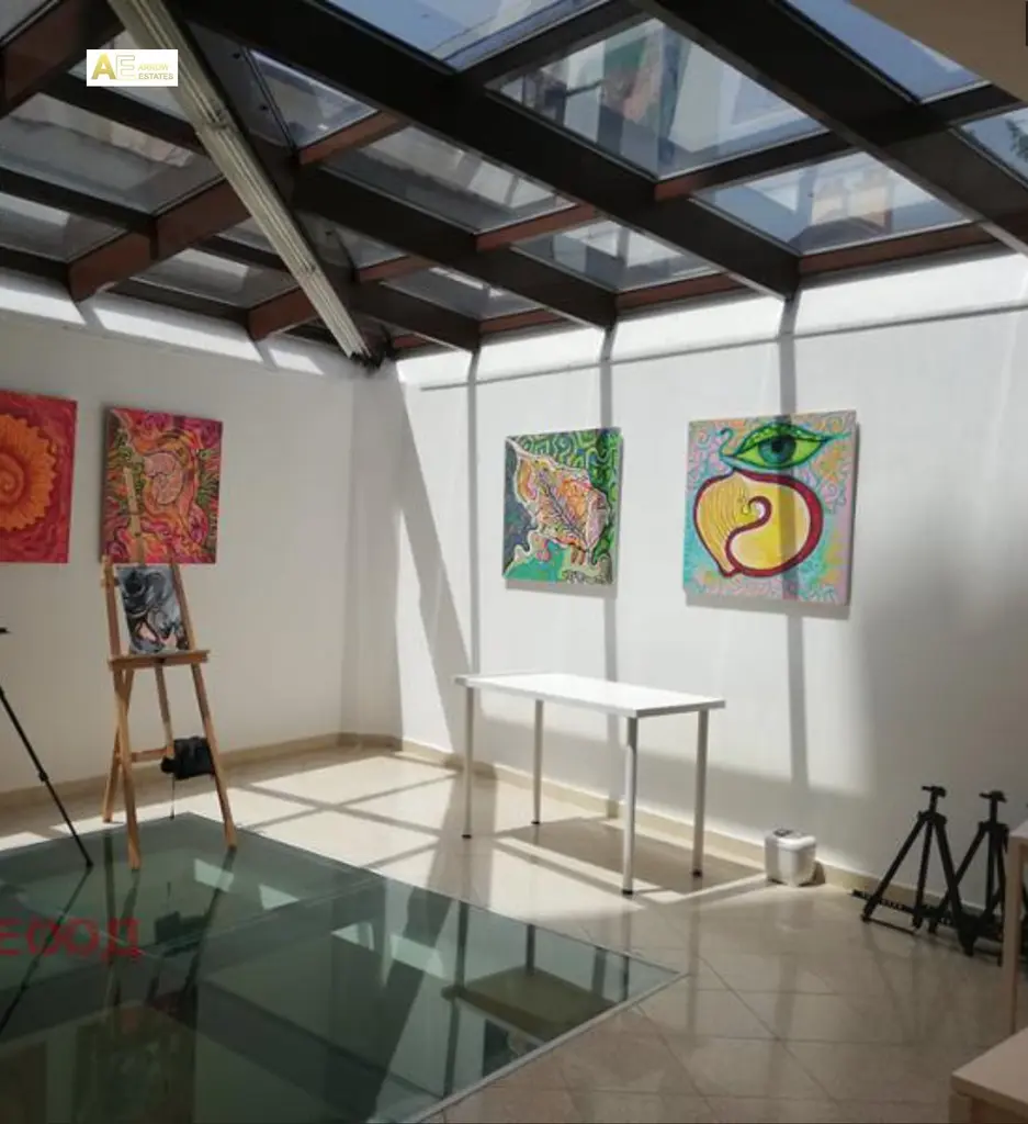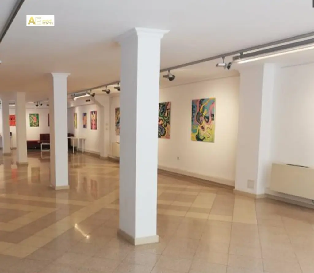 Представителен офис в сграда от смесен тип.Имота е разпределение тип отворено пространство ,разположен на две нива.Партерното ниво с площ 218 кв.м.,състои се от помещение тип отворено пространство.Сутеренното ниво с площ 223 кв.м.,състои от помещение тип отворено пространство, кабинет ,склад ,малък кухненски бокс, 2 броя WC.Пода е завършен с гранитни настилки. Двете нива са свързани посредством вътрешно стълбище. В района на административният и културен център на столицата.