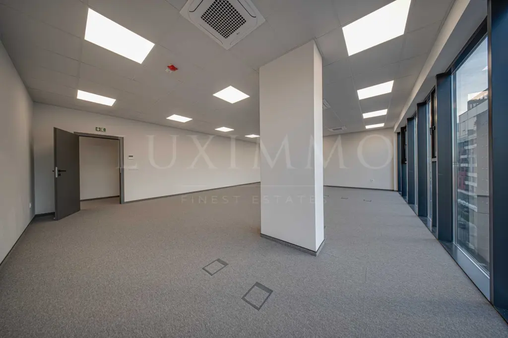 Представяме офис 10, състоящ се от голямо Open Space пространство, просторен отделен кабинет, рецепция/приемна и два санитарни възела. Има опция за обединение на всички помещения в едно. Застроената площ 128.72 кв.м.