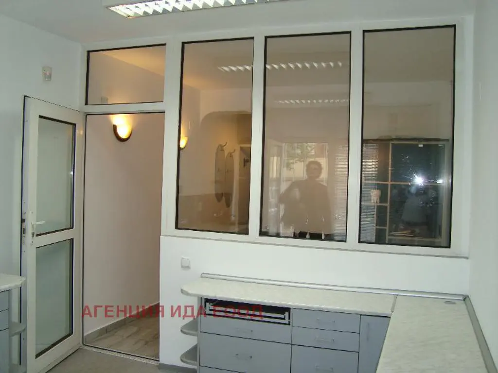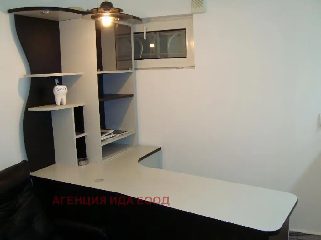 В близост до парка Заимов. Непосредствено до метростанция Театрална. Самостоятелен вход. Разпределение: коридор, две помещения, склад, санитарен възел. . Има всички необходими разрешителни и обзавеждане за зъболекарски кабинет без зъболекарски стол. Може да се използва и за офис /счетоводна или адвокатска дейност, рекламна агенция, агенция за преводи, туристическа агенция, шивашко или фотоателие, масажно или козметично студио, кабинет за всякакъв вид медицински или социални услуги. Обезопасен с ролетни щори. Гледа към вътрешен двор. Възможност за поставяне на светеща реклама. Близо до транспортни връзки. За повече информация и контакт: 0888 86 37 73