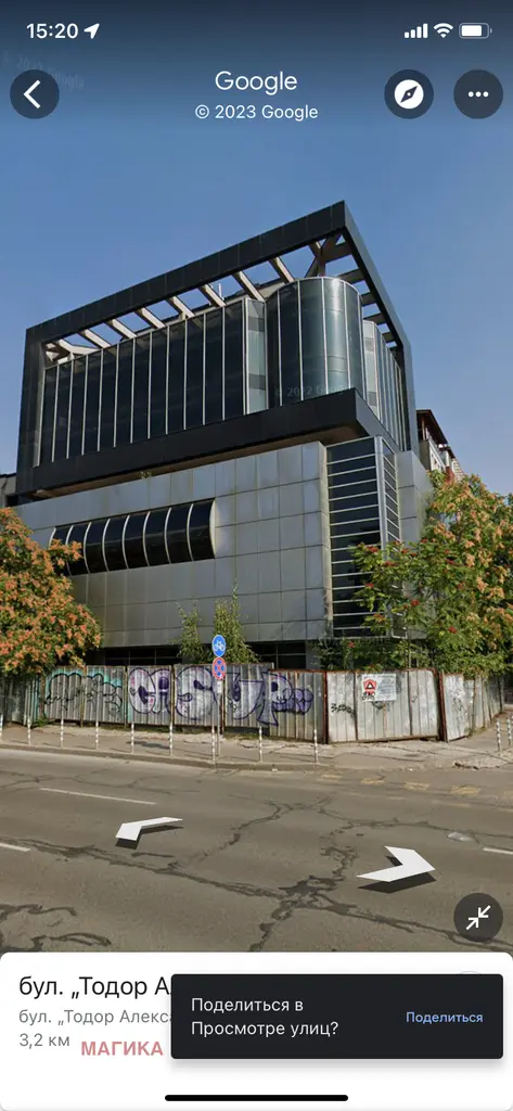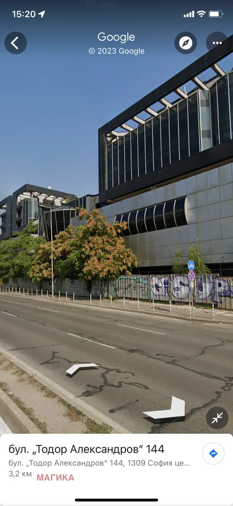 -построен в поземлен имот идентификатор 68134.303.171 /шестдесет и осем хиляди сто тридесет и четири точка триста и три точка сто седемдесет и едно/ съгласно кадастралната карта и кадастралните регистри на гр. София, одобрени със Заповед РД-18-32/01.04.2016г. на Изпълнителния директор на АГКК ,представляващ УПИ ХIII-30, от кв. 170 по регулационния план на гр. София, местност Запад направление , одобрен със Заповед РД-09-50-05/08.01.1998 г. и със Заповед РД-09-170/31.08.2005 г., с площ от 1 040 кв. м., при граници: ул. Зайчар , УПИ XIV-19, УПИ X I-14, ул. Царибродска , бул. Тодор Александров , находящ се в гр. София, бул. Тодор Александров 144. Сграда със смесено предназначение, с подземни гаражи, изградена в степен на завършеност груб строеж , разделена на три функционални зони - търговски център със самостоятелен вход, административна част със самостоятелен вход и жилищна част със самостоятелен вход, със застроена площ от 927 кв. м. и РЗП от 5 647 кв. м., съгласно разрешение за строеж 794/18.10.2005 г., изменено със заповед РД-09-50- 1235/19.09.2008 г. и одобрен инвестиционен проект от 29.08.2005 г., така както същият е изменен към 27.07.2007 г.