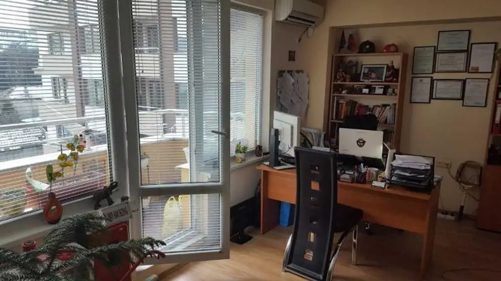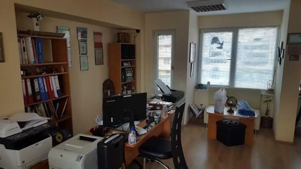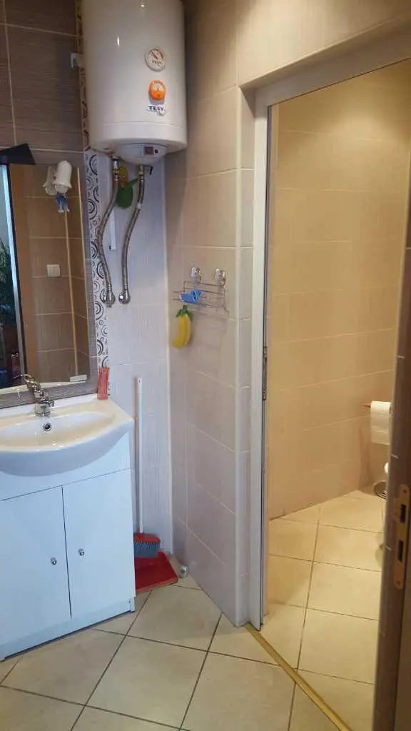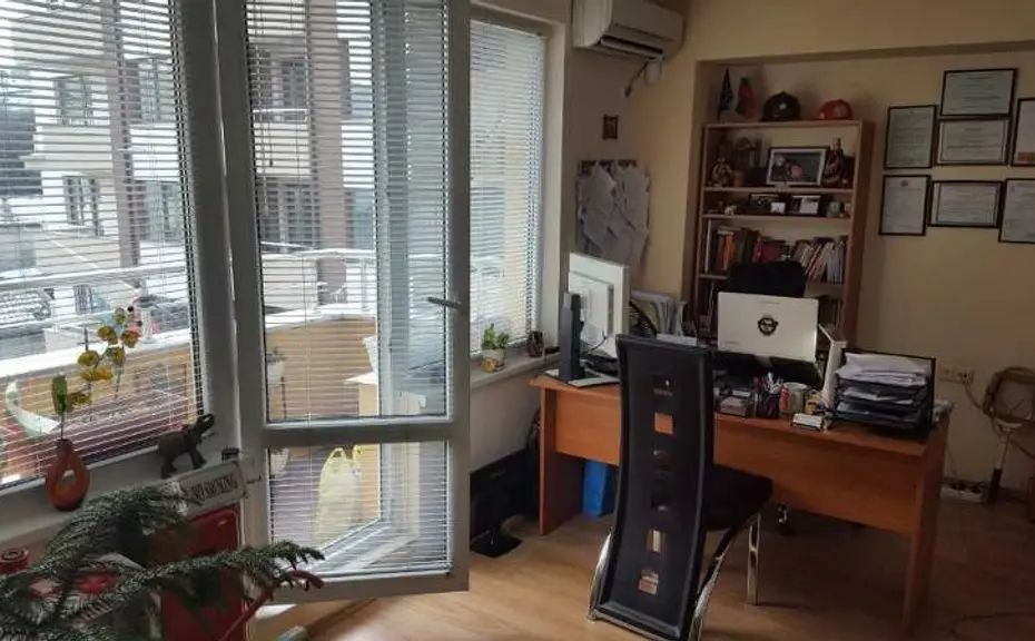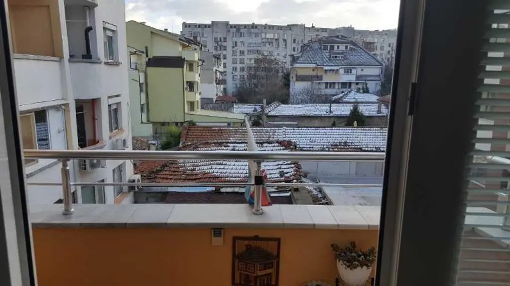 имотът се намира в нова лукс кооперация на втори жилищен етаж,хол с кухненски бокс,спалня,голяма южна тераса портиер,асансьор,видеонаблюдение , санирана ,с хубава тераса на юг, с ПВС-дограма,север-юг,5 камерна-дограма,климатик, ламиниран паркет,обзаведен голяма хубава баня с бойлер и отделно мокро помещение, мебели,ламиниран паркет,кухня СКШ,топъл,удобен за отдаване под и гараж 20кв.м в сутерена-16000евро ,удобен за наем за живеене, автоматична ел.врата, видеонаблюдение ,.СОТ.Отличен вид.