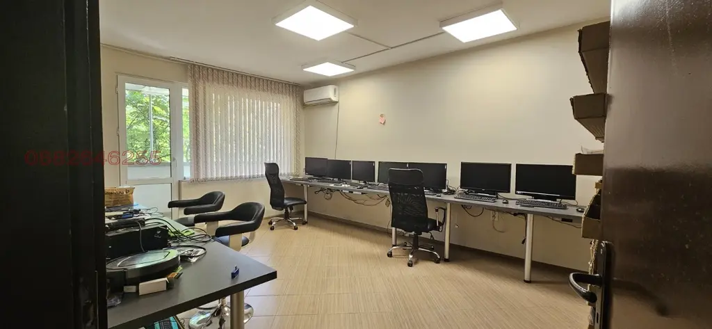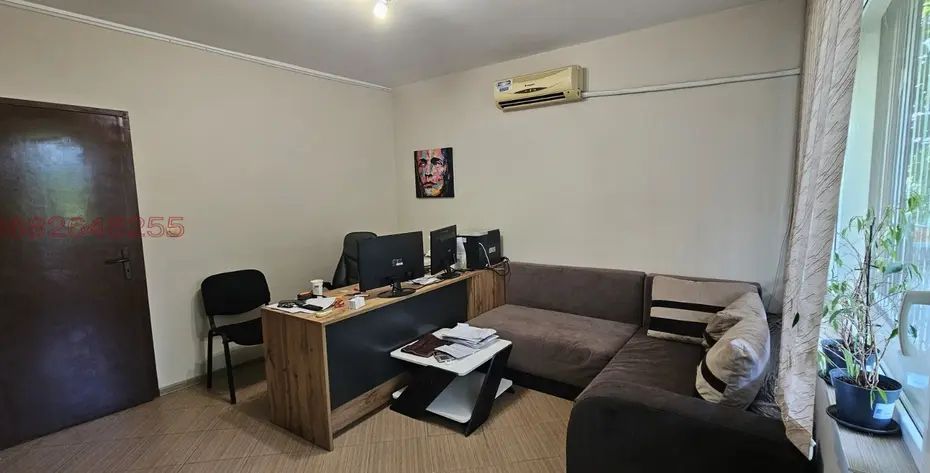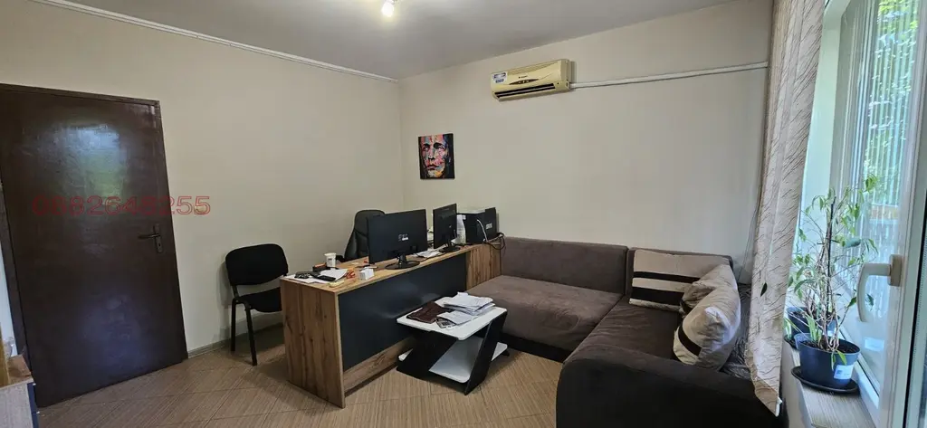 Обзаведен за офис , може да се използва за живеене , двустаен апартамент 2 стаи , голяма баня , малка кухня , и голяма тераса Южно изложение , 2 климатика