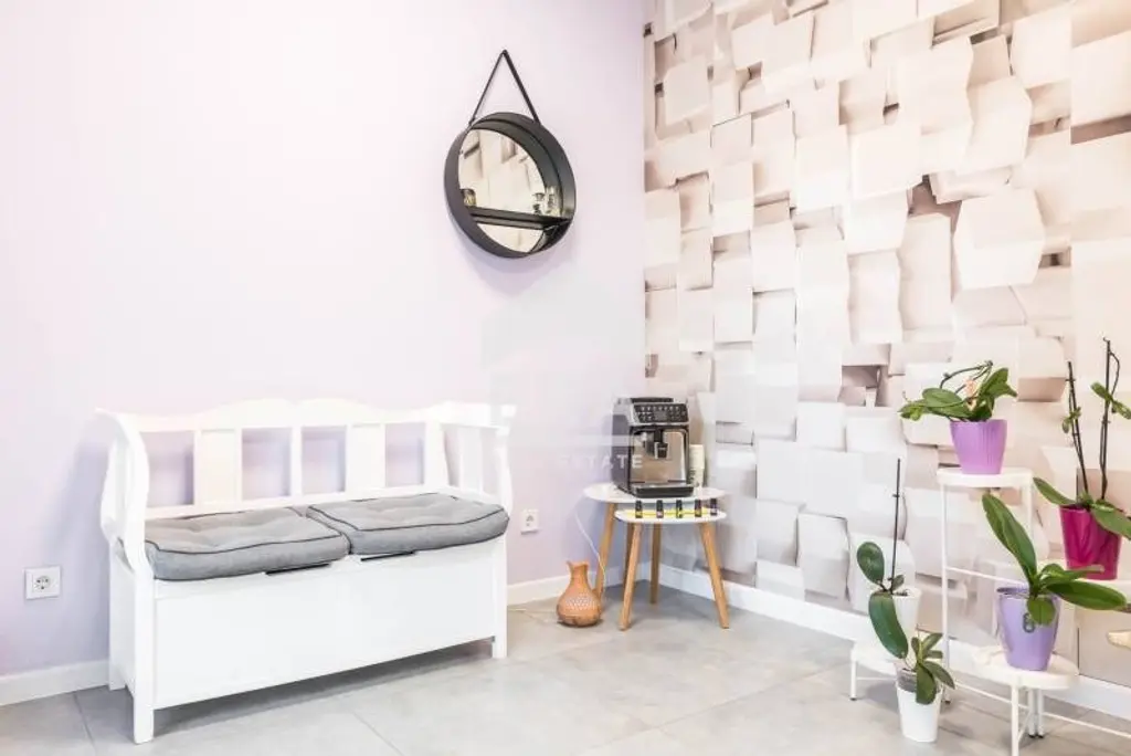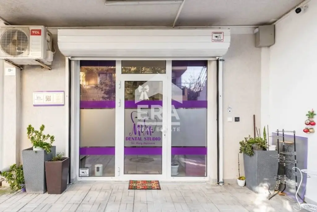 Имотът се отдава необзаведен, завършен до ключ, с кухненски шкафове и оборудвана баня с тоалетна. Помещенията имат високи тавани - 2,80 и 3 метра, прекарани са комуникации за мокра аспирация, енергоспестяваща техника и климатик, охранителна решетка, видеонаблюдение - 2 камери за външно наблюдение и 4 камери за вътрешно наблюдение, СОТ, защита за високо и ниско напрежение в ел. таблото. Поставен е качествен стъклопакет 4 сезона, за добро отопление на целия кабинет и преимущество за осветеността на цялото помещение. Осветителни LED панели предават максимално близка до естествената слънчева светлина осветеност. Цялата електрическа инсталация е сменена. Имотът е подходящ за различни видове търговска или творческа дейност - лекарски/стоматологичен кабинет, СПА/соларно студио, салон за красота, фризьорски/козметичен салон, банков офис, счетоводна/нотариална кантора, художествена галерия, детска занималня, учебен/езиков център, йога и др.
