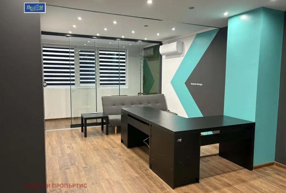 Агенция за недвижими имоти Акценти Пропъртис Ви предлагаме луксозно обзаведен офис, находящ се в бизнес сграда с контрол на достъпа, разположена в идеалния център на гр. Велико Търново. Офисът е с площ от 51 кв.м., разположен на междинен етаж и се състои от помещение с обособен кухненски бокс и тераса, приемна и санитарен възел. Отдава се обзаведен и оборудван във вида на снимките. Отоплението и охлаждането е решено с висок клас климатик. В наемната цена е включен интернет. Номер на офертата 10326.