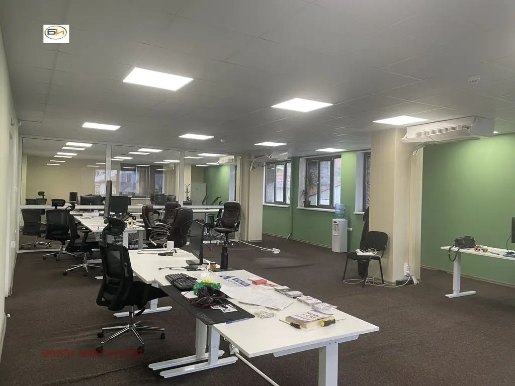 ОФИС ПОД НАЕМ Централна част, 353.50 кв.м., ет.3 в бизнес сграда с асансьор, на 1-вият етаж на сградата е разположен магазин, на 2-рият етаж - офиси, офис етажът под наем се състои от светло и просторно офис помещение, което може да бъде разделено на отделни зони, самостоятелна заседателна зала, кухня, тераса, 2 санитарни възела тоалетна с баня, климатизация и вентилация, газ, отлично състояние, PVC дограма, стени - латекс, под - ламиниран паркет, поддържани общи части на сградата, възможност за наемане на до 4 паркоместа, офисът и паркоместата могат да бъдат наети от 01.08.2026 г., наемна цена - офис етаж - 1 250 Евро без ДДС, 1 бр. паркомясто - 55 Евро без ДДС