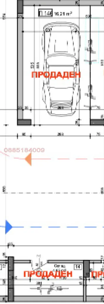 Парко мястото е на сутеренен етаж, с площ от 16,21 кв.м, идеални части от поземления имот 4,25 кв.м, склада към парко мястото е с площ от 4,65 кв.м, идеални части от поземления имот 1,21 кв.м, обща площ 26,32 кв.м.