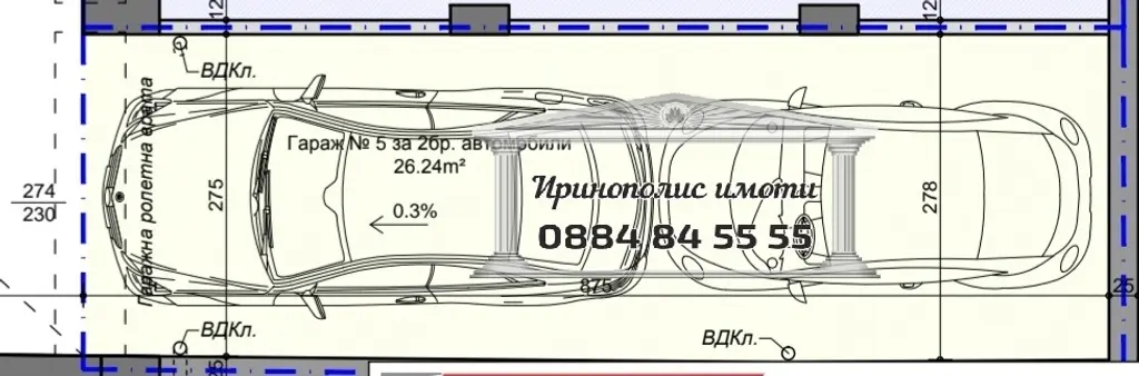 'ИРИНОПОЛИС ИМОТИ' предлага на вашето внимание ПОДЗЕМЕН ГАРАЖ в новопостроена сграда с АКТ 16 в близост до магазин Смокиня.