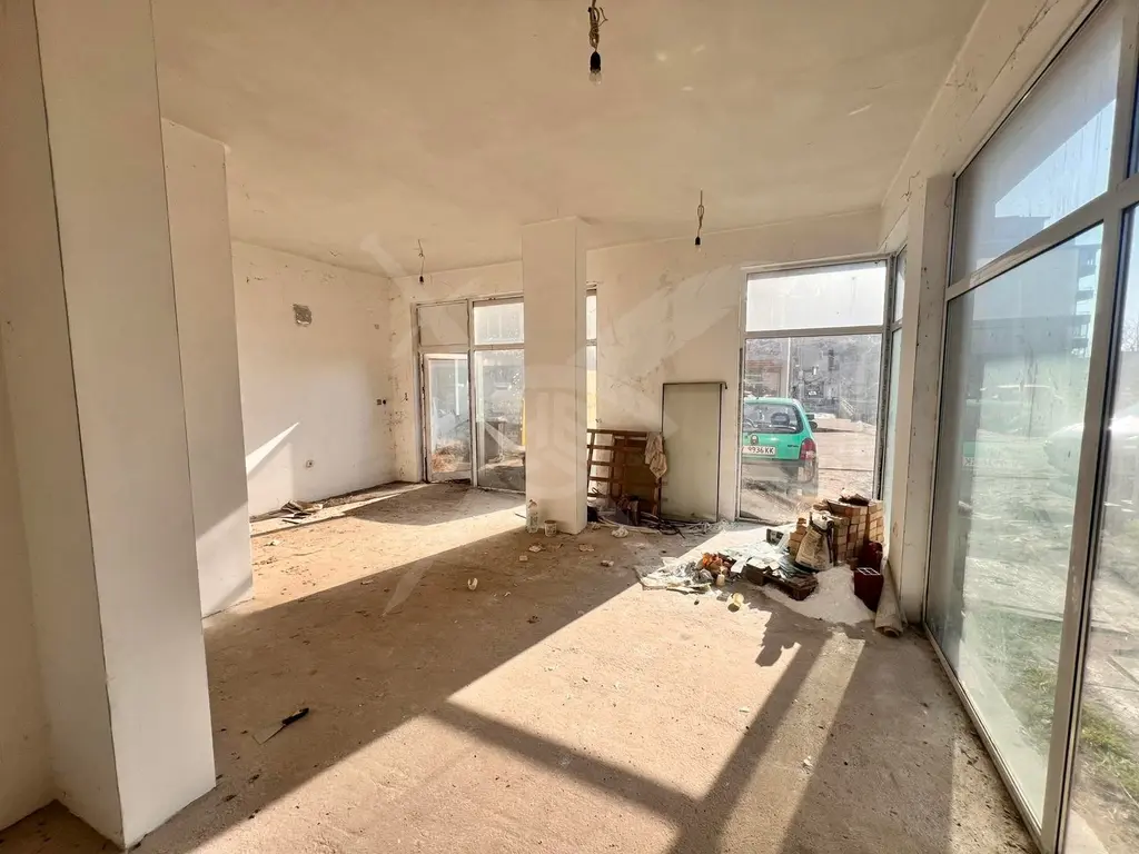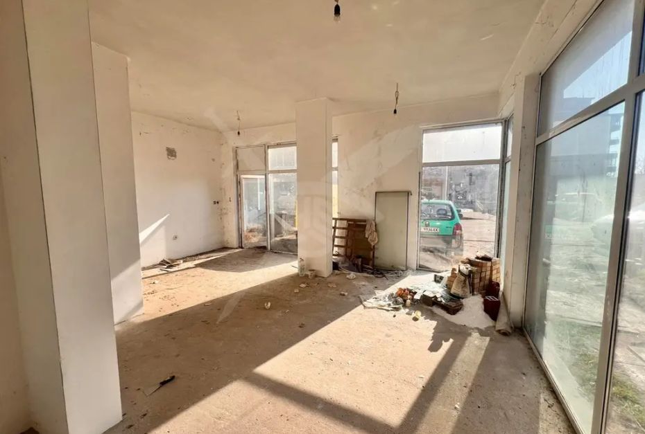 РАЗПРЕДЕЛЕНИЕ: Имотът разполага с площ 100кв.м., състои се от основно помещение, склад и санитарен възел, като разполага с два входа, което го прави подходящ за редица дейности хранителен магазин, дентална клиника, аптека и много други.