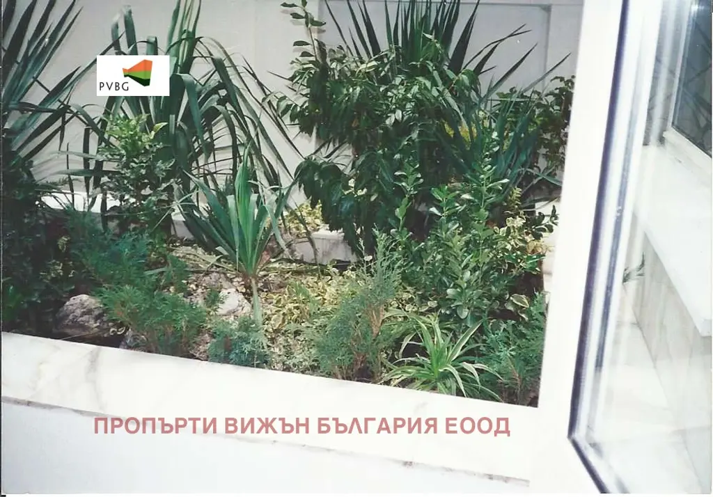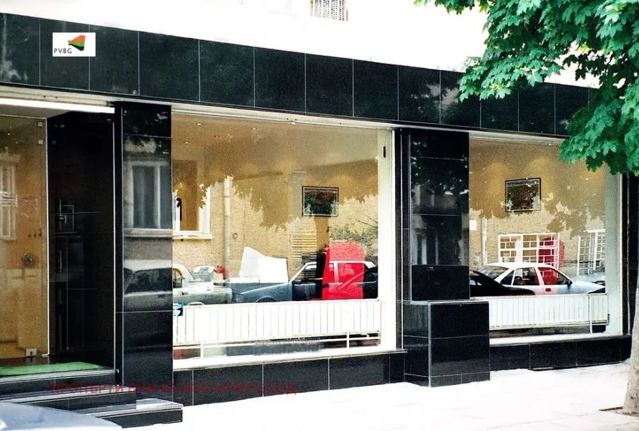 Големи витрини от зелен гранит с бронирани стъкла. Санитарен възел и кухненски бокс. Работило е като магазин за дизайнерски дрехи, шоурум, представителство, финансова къща и офис (7 работни места + мениджърски кабинет).