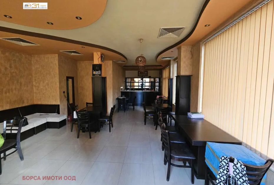 МАГАЗИН ПОД НАЕМ - Стария пазар, бул.'Мито Орозов', 120 кв.м., състои се от търговска част около 80 кв.м., склад около 40 кв.м., санитарен възел, търговска част и склад - под - гранитогрес, стени - латекс, санитарен възел - фаянс и теракота, алуминиева дограма, климатик, вентилация, бившо кафе с 50 места, площадка пред помещението, удостоверение за въвеждане в експлоатация за кафе, подходящо за магазин, фризьорски или козметичен салон, собственост на фирма, няма ДДС в/у наемната цена, дава се под наем без оборудването от снимките