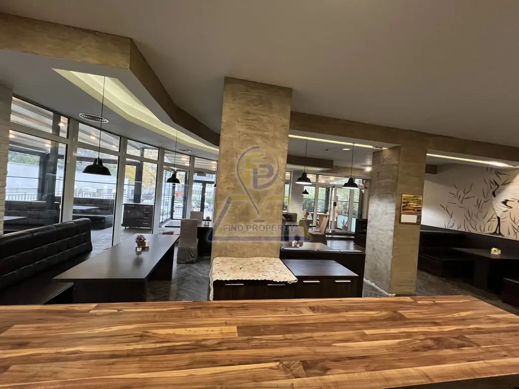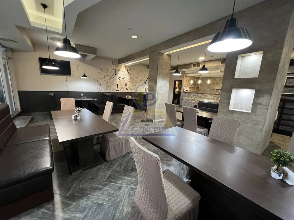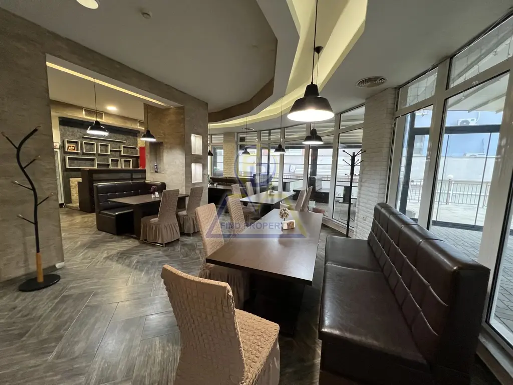 Описание на имота: Чистата застроена площ на ресторанта е 149,27 кв.м., 16,80 кв.м. са общите части и отделно 80 кв.м. затворена тераса с дистанционно отварящи се прозорци за добро проветрение и приятна среда за непушачите. Затворената тераса е зоконно построена.