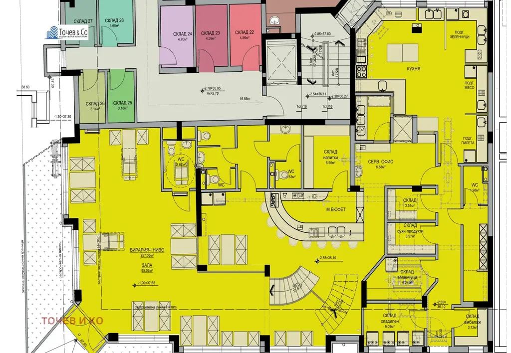 Строителна фирма ТОЧЕВ продаваме заведение със статут, на две нива в блок 613, на тапа. Сградата е пред Акт 16. Изложение-запад-юг.