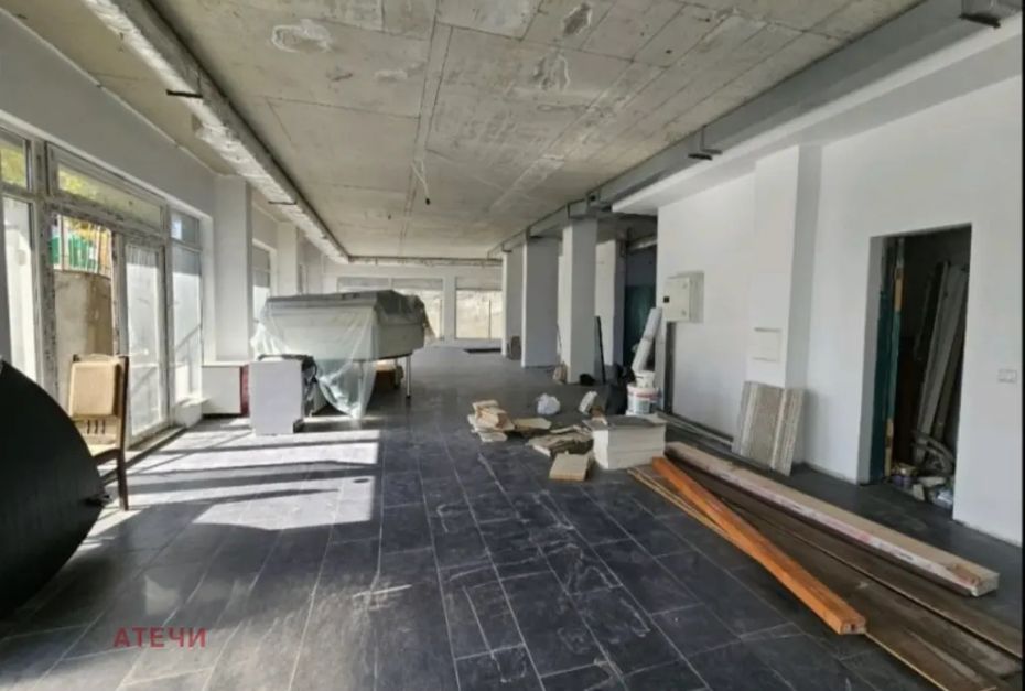 Помещението е 300 кв.м., с два входа /рампа от към паркинга и централен вход от към улицата/, 5 паркоместа за отделно от цената за под наем, склад в сутерена, трифазен ток и две WC, статут на ресторант.