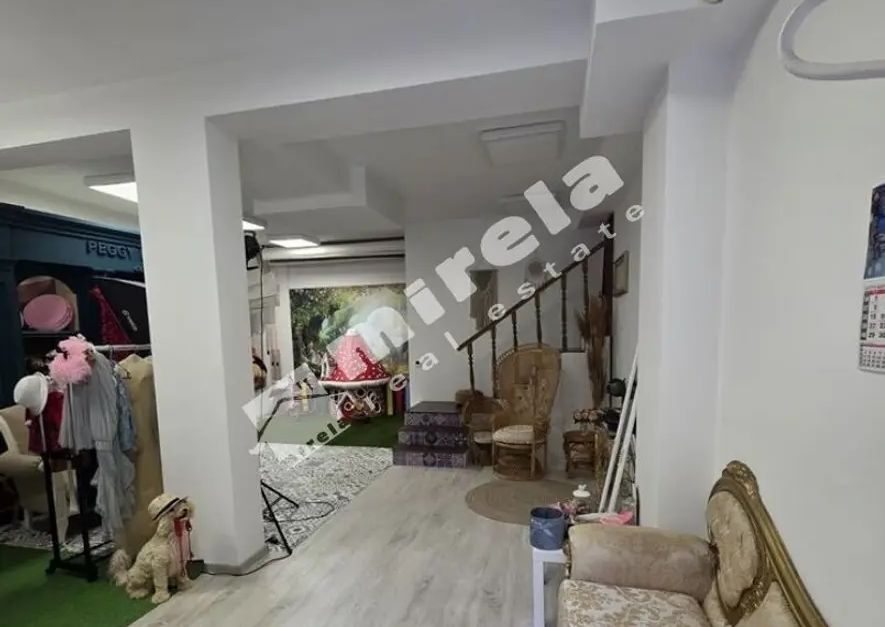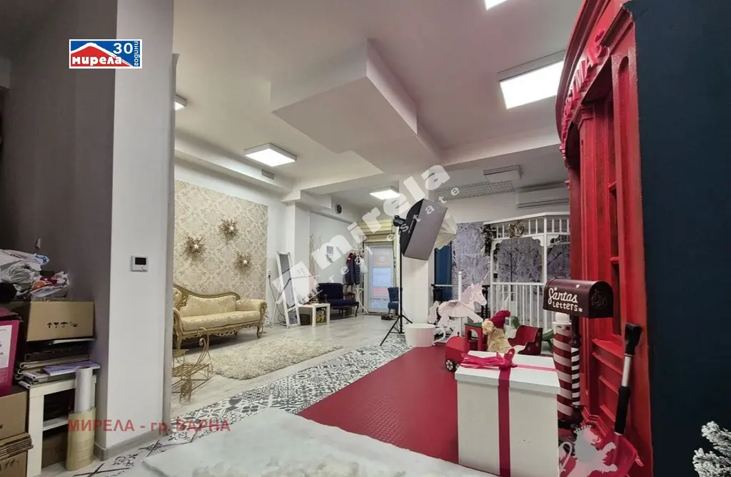Помещението е ъглово, с големи стъклени витрини. Височина на таваните 3.2 м.