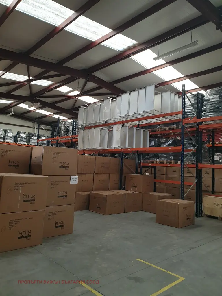 Без комисиона от наемателя! Склад в отлично поддържан и денонощно охраняван логистичен парк до Божурище. Дава се под наем склад с площ от 435 кв.м. Метална конструкция с термопанели и височина до кота корниз 5,00 м. Има термоизолираща секционна индустриална врата HORMANN' с размери 4.00 м./4.00 м., офисно помещение с достъп до интернет и телефон, както и самостоятелен санитарен възел с топла вода. Месечната наемна цена само за складовата площ е в размер на 4.30 /кв.м. без ДДС. Може да се наеме веднага. В склада са монтирани стелажни системи - метални елементи система Conventional' за 150 броя палети с товароносимост 1000 кг. на всяко палетомясто. Месечната наемна цена за стелажните системи е в размер на 300 евро.