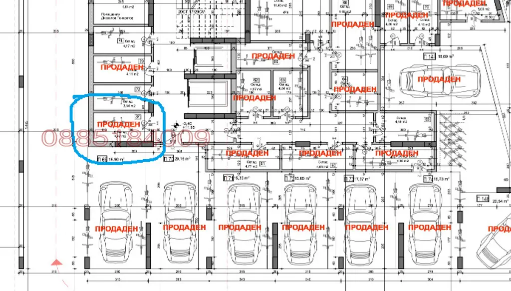 Склада/мазето е с площ от 4,65 кв.м, идеални части от поземления имот 1,21 кв.м.