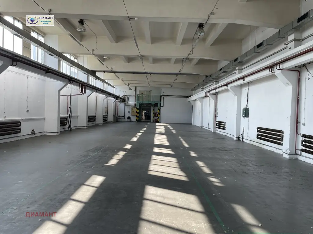 Склад / промишлено помещение с площ 1500 кв.м., възможно е да се отдадат и 1300 кв.м.. Всички комуникации в района. Възможност на достъп на ТИР в двора. Сътои се от голямо хале, две малки халета, офиси, съблекални, портиерна. Под - шлайфан бетон, портален кран 1.5 т., две големи врати, газифициран, аспирация, голяма използваема мощност до 150 kw., видеонаблюдение, контрол на достъпа. Помещенията са в много добро състояние.