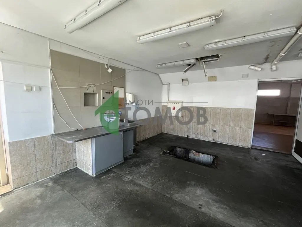 Имоти Томов представя на Вашето внимание промишлено помещение (цех) под наем с площ от 520 кв.м в района на Басейна. Имотът се състои от промишлен цех, складове, съблекални за мъже и жени, две бани и тоалетни, лабораторна част, два офиса и товарна рампа. Помещението е с отделен електромер и водомер.