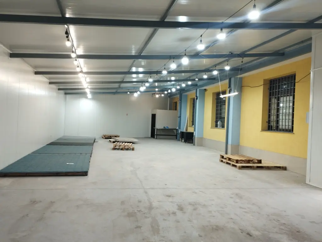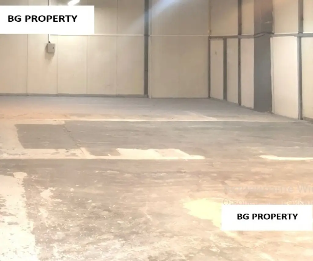 Височина на помещението от 4 до 5 м. Достъп два входа товарен и пешеходен. Стени и покрив-термопанел, под-шлайфан бетон с лесни маневри на колички.