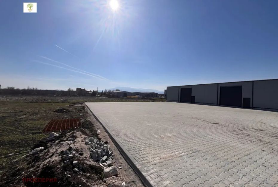 Открит павиран паркинг- 1000 кв.м. Ток и вода. Добра видимост от главното шосе. Имотът предлага възможност за бърз достъп до София и главните пътни артерии на страната.